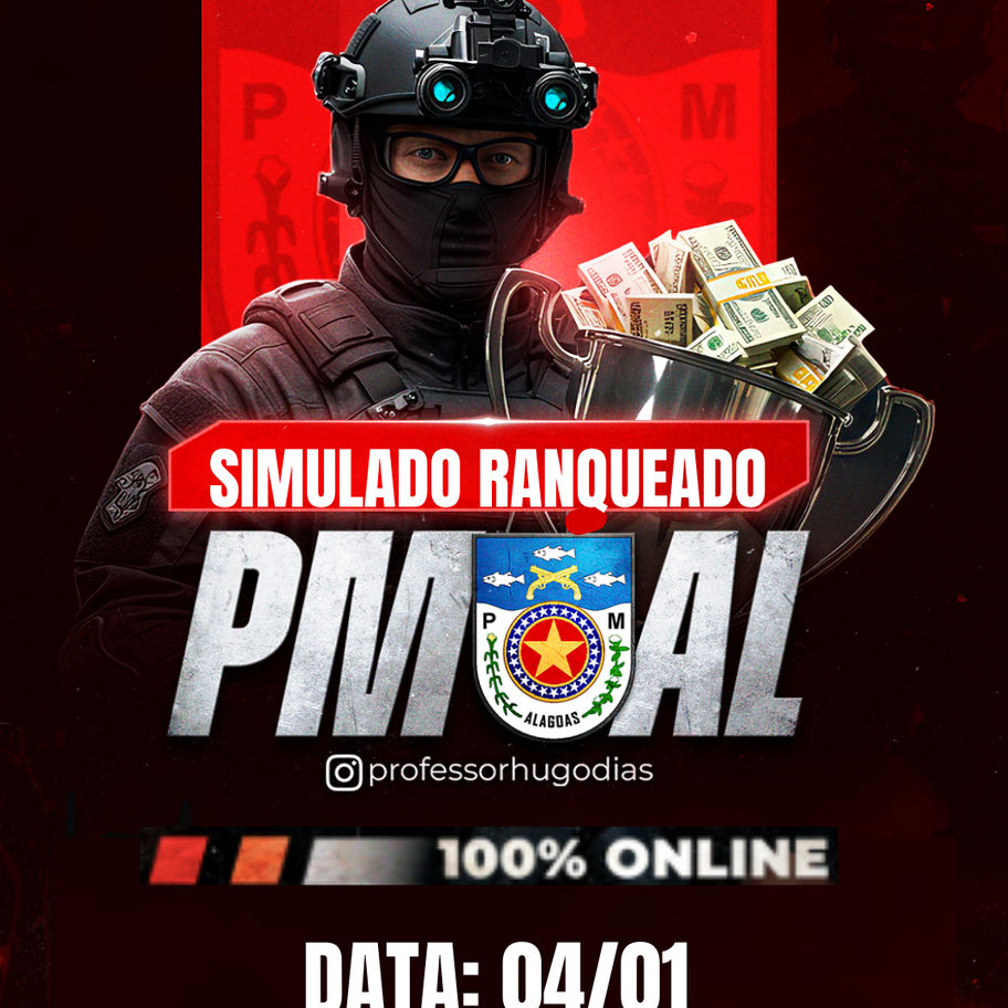 Prepare-se para transformar sua jornada rumo à aprovação no concurso da Polícia Militar de Alagoas! Este Simulado Ranqueado foi desenvolvido para que você possa saber quais assuntos você precisa focar mais. Resultado será no dia 05/01 às 18h.